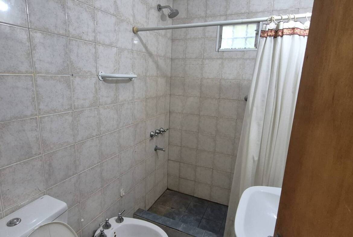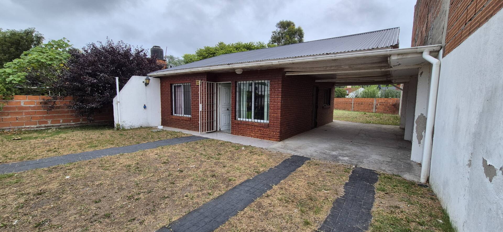 Garaje semi cubierto pasante, parque al fondo con galería semi cubierta donde se encuentra una parrilla y lavadero.