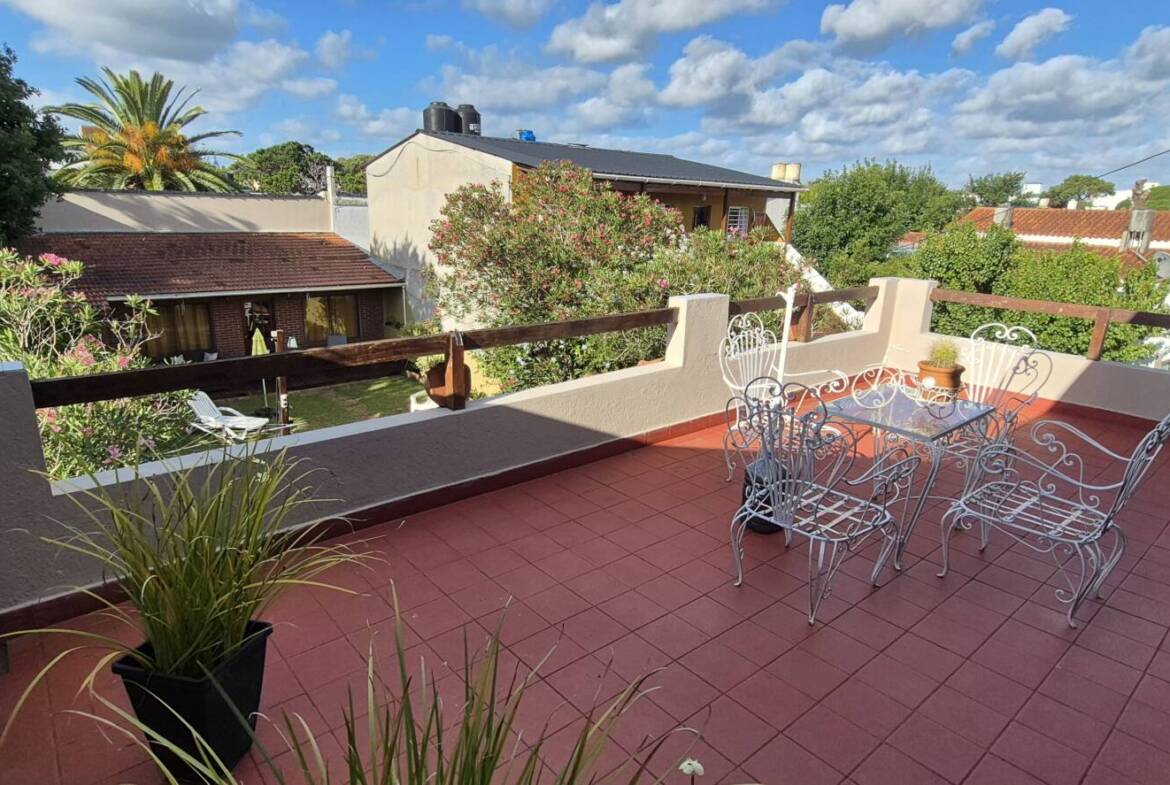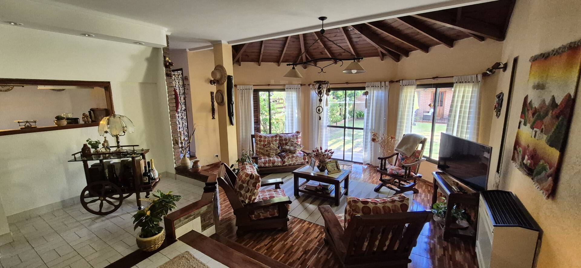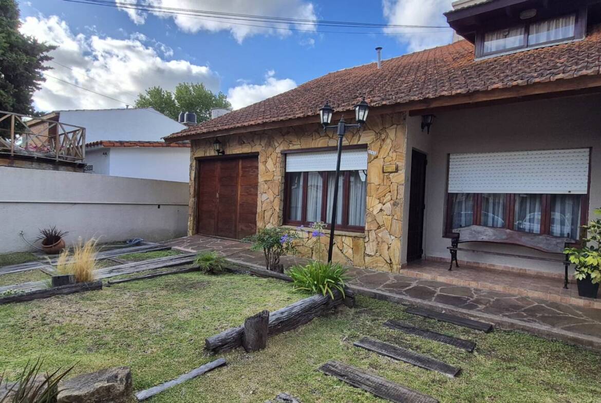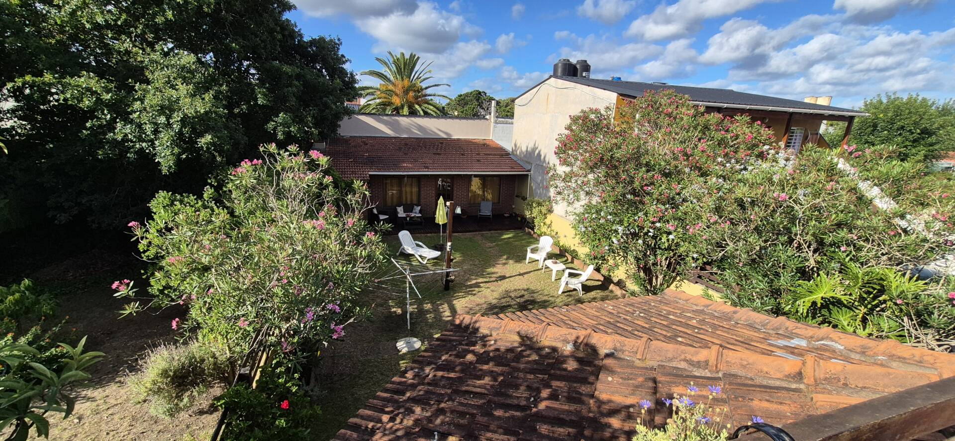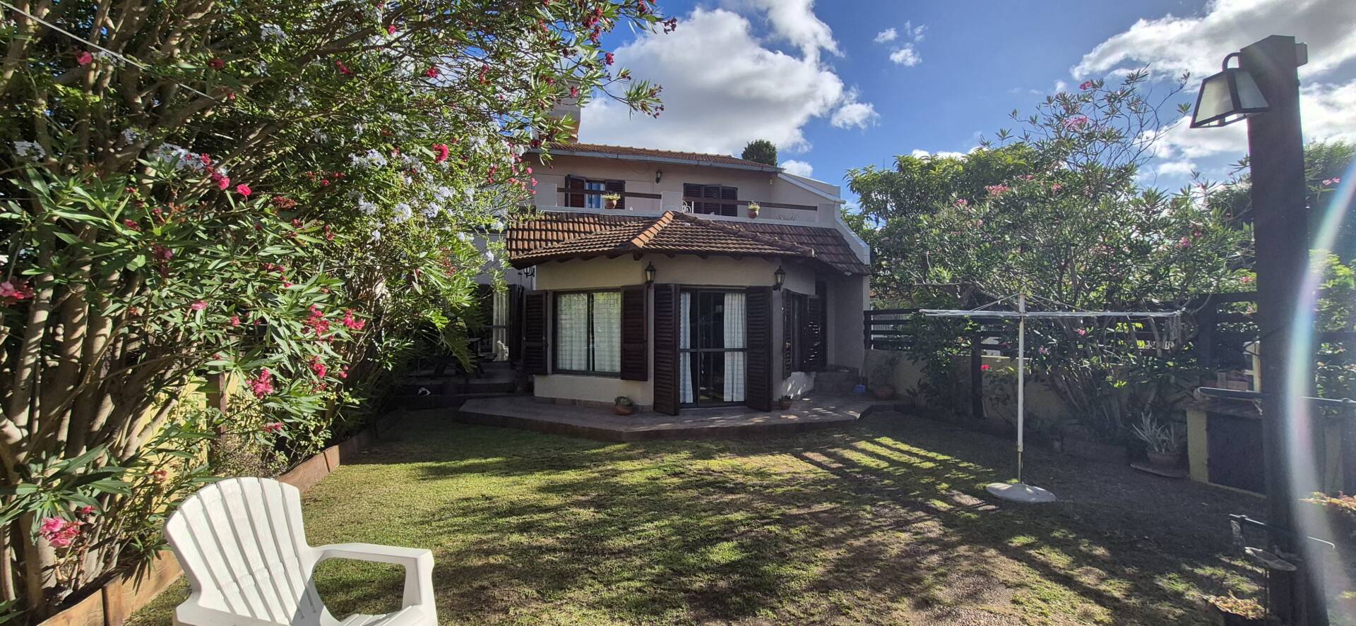 Casa desarrollada sobre una superficie total de 440 m², con 220 m² cubiertos, ubicada en un entorno residencial consolidado. La propiedad cuenta con un diseño tradicional, destacando materiales como ladrillo y madera en sus terminaciones exteriores e interiores. El frente presenta un jardín con senderos y espacios verdes, mientras que el fondo ofrece un amplio patio con áreas de descanso y vegetación, ideal para actividades al aire libre.