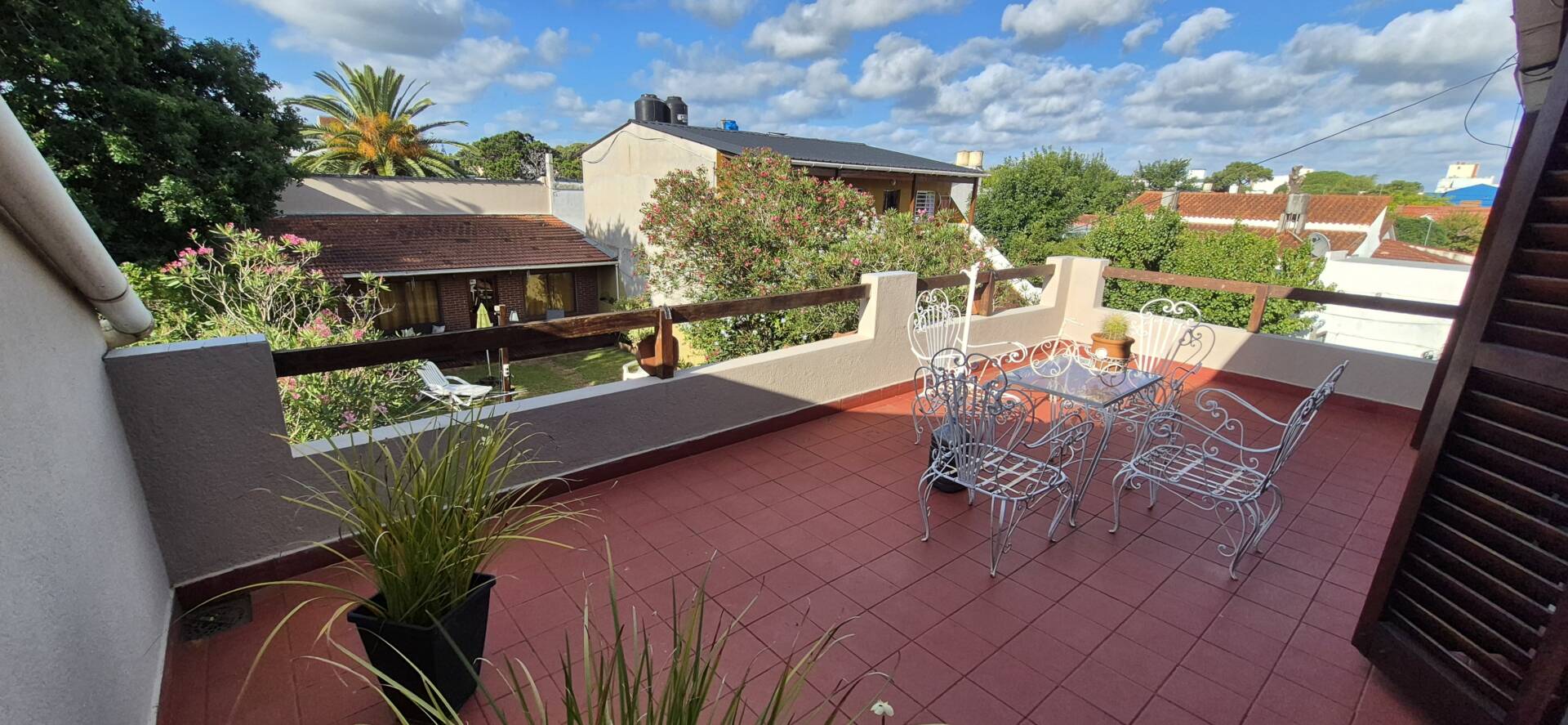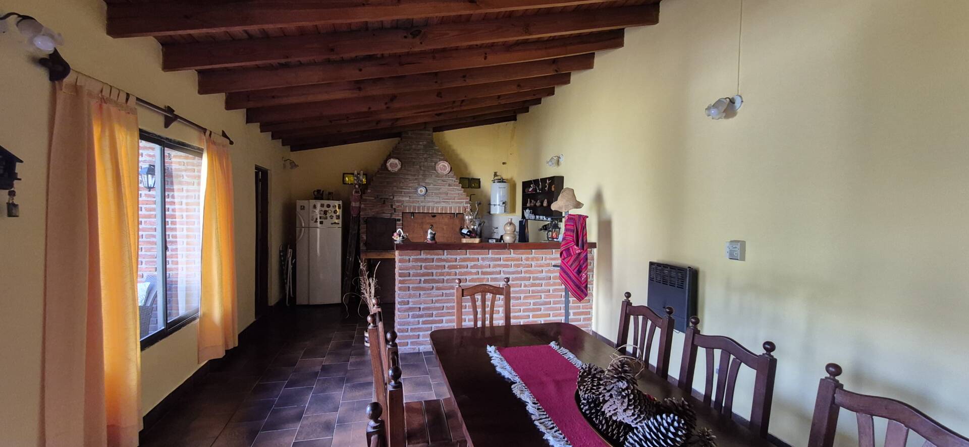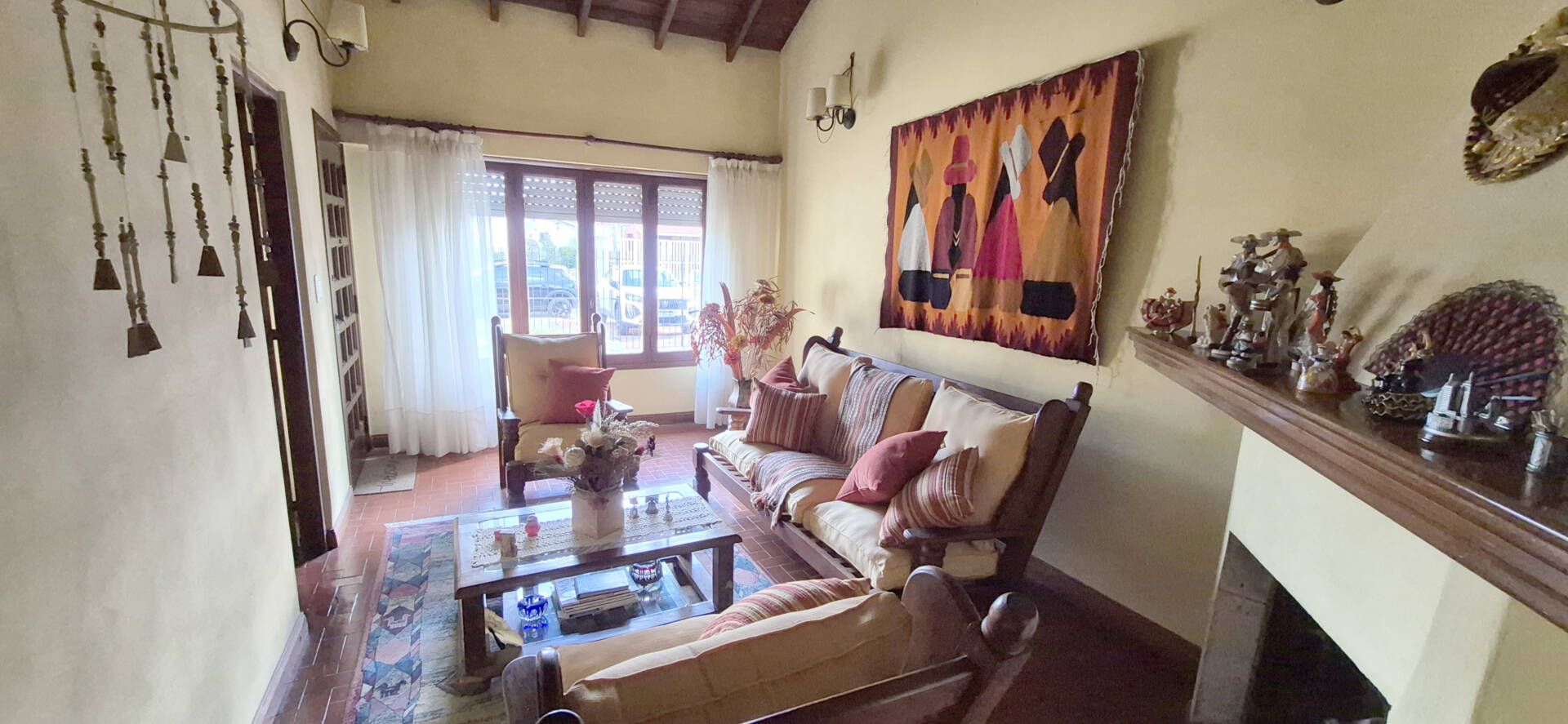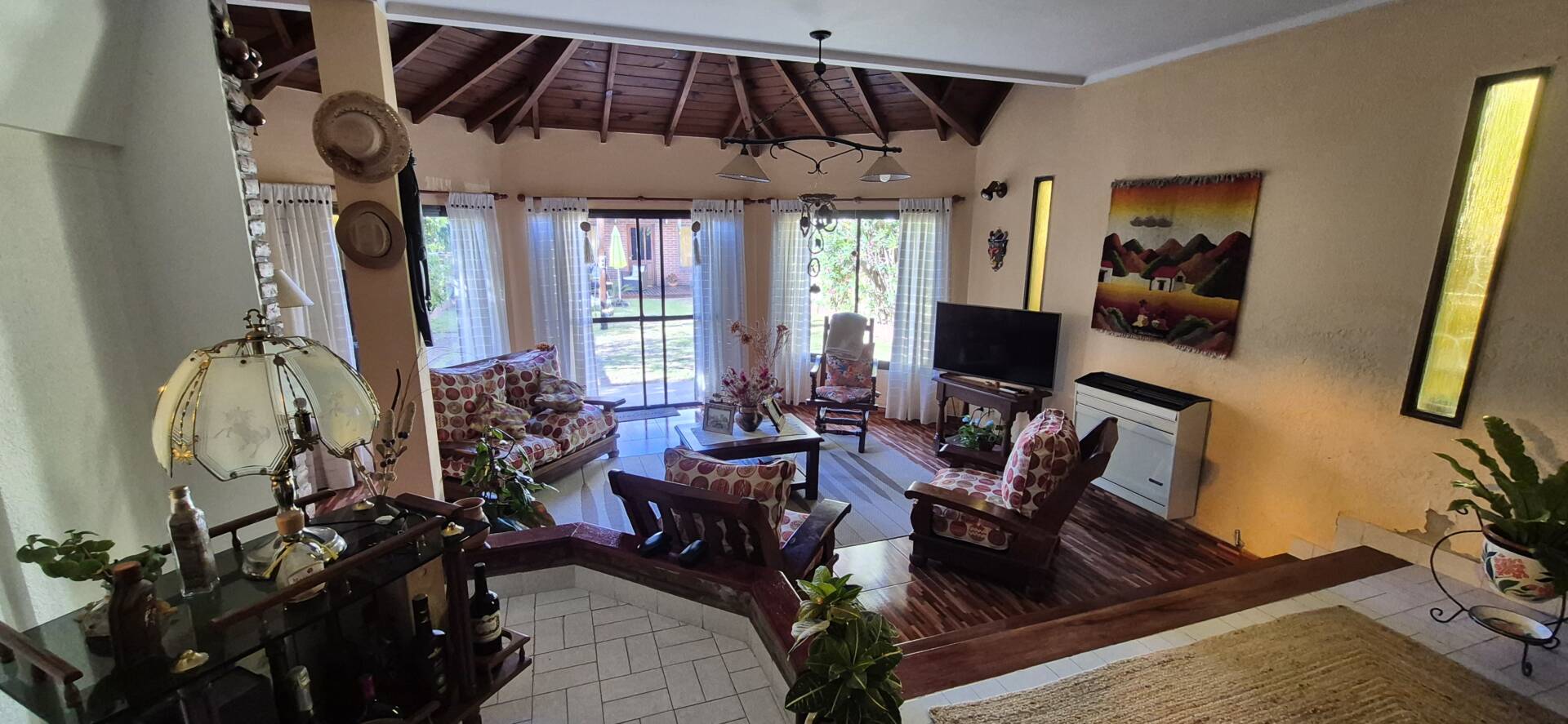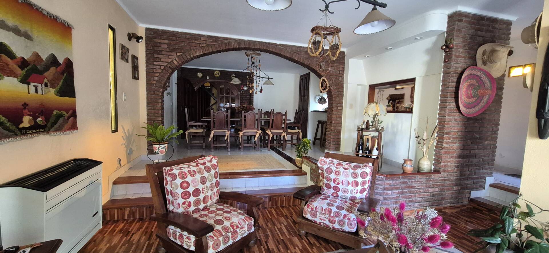 Casa desarrollada sobre una superficie total de 440 m², con 220 m² cubiertos, ubicada en un entorno residencial consolidado. La propiedad cuenta con un diseño tradicional, destacando materiales como ladrillo y madera en sus terminaciones exteriores e interiores. El frente presenta un jardín con senderos y espacios verdes, mientras que el fondo ofrece un amplio patio con áreas de descanso y vegetación, ideal para actividades al aire libre.