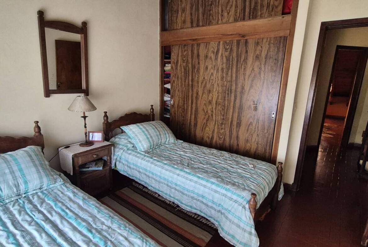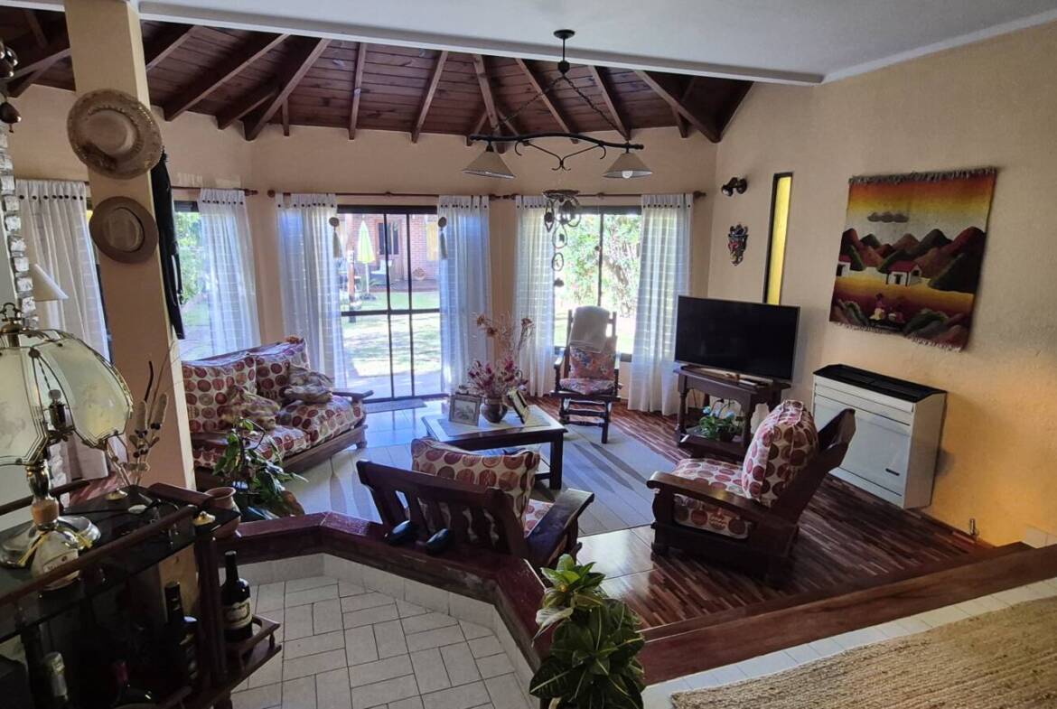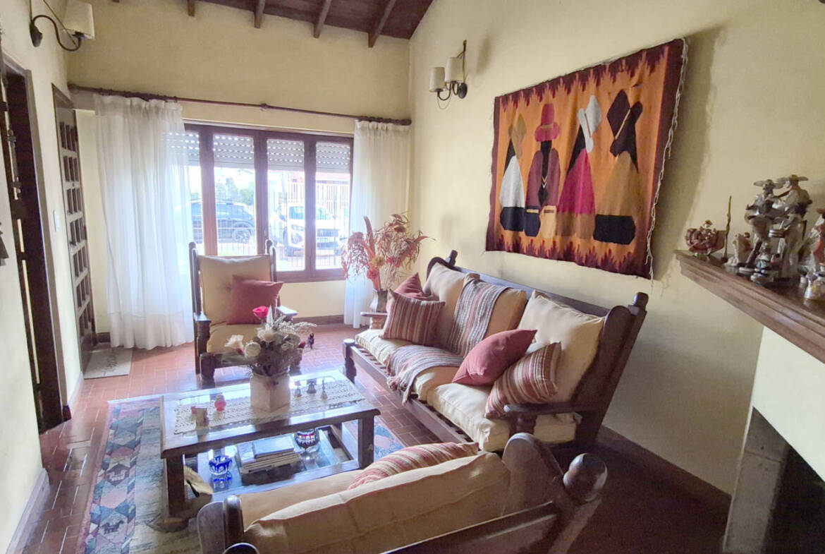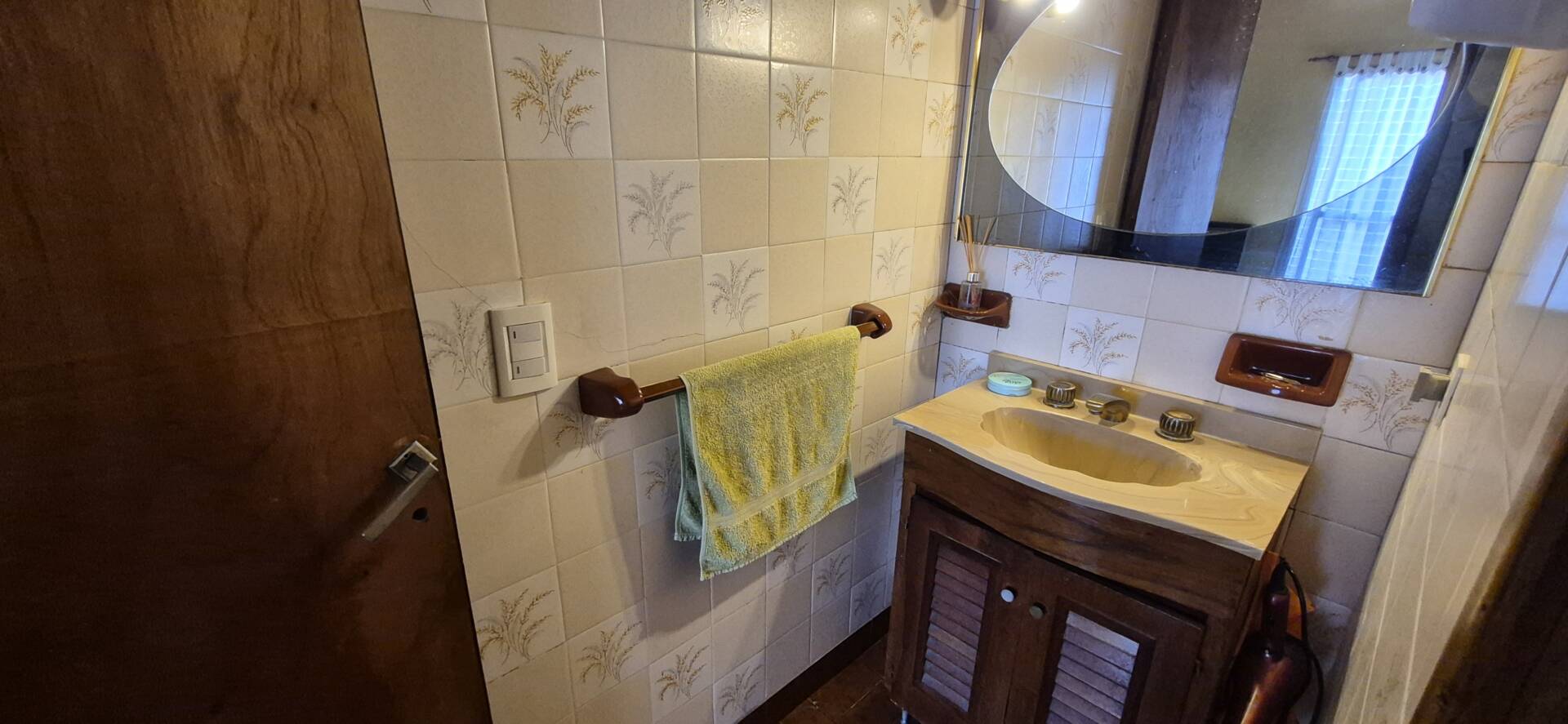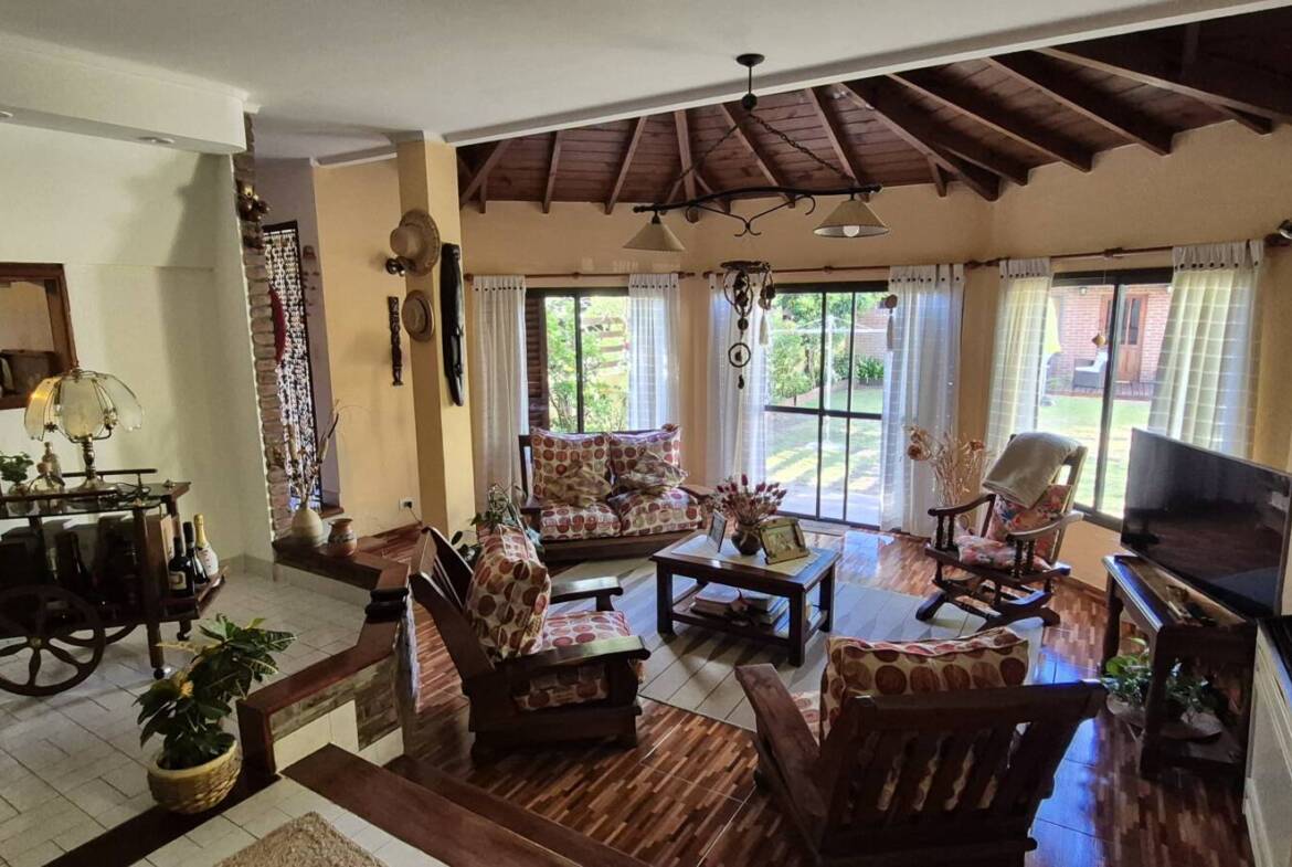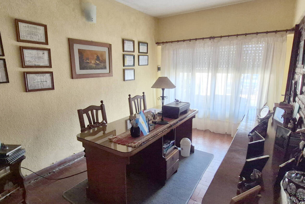 Casa desarrollada sobre una superficie total de 440 m², con 220 m² cubiertos, ubicada en un entorno residencial consolidado. La propiedad cuenta con un diseño tradicional, destacando materiales como ladrillo y madera en sus terminaciones exteriores e interiores. El frente presenta un jardín con senderos y espacios verdes, mientras que el fondo ofrece un amplio patio con áreas de descanso y vegetación, ideal para actividades al aire libre.
