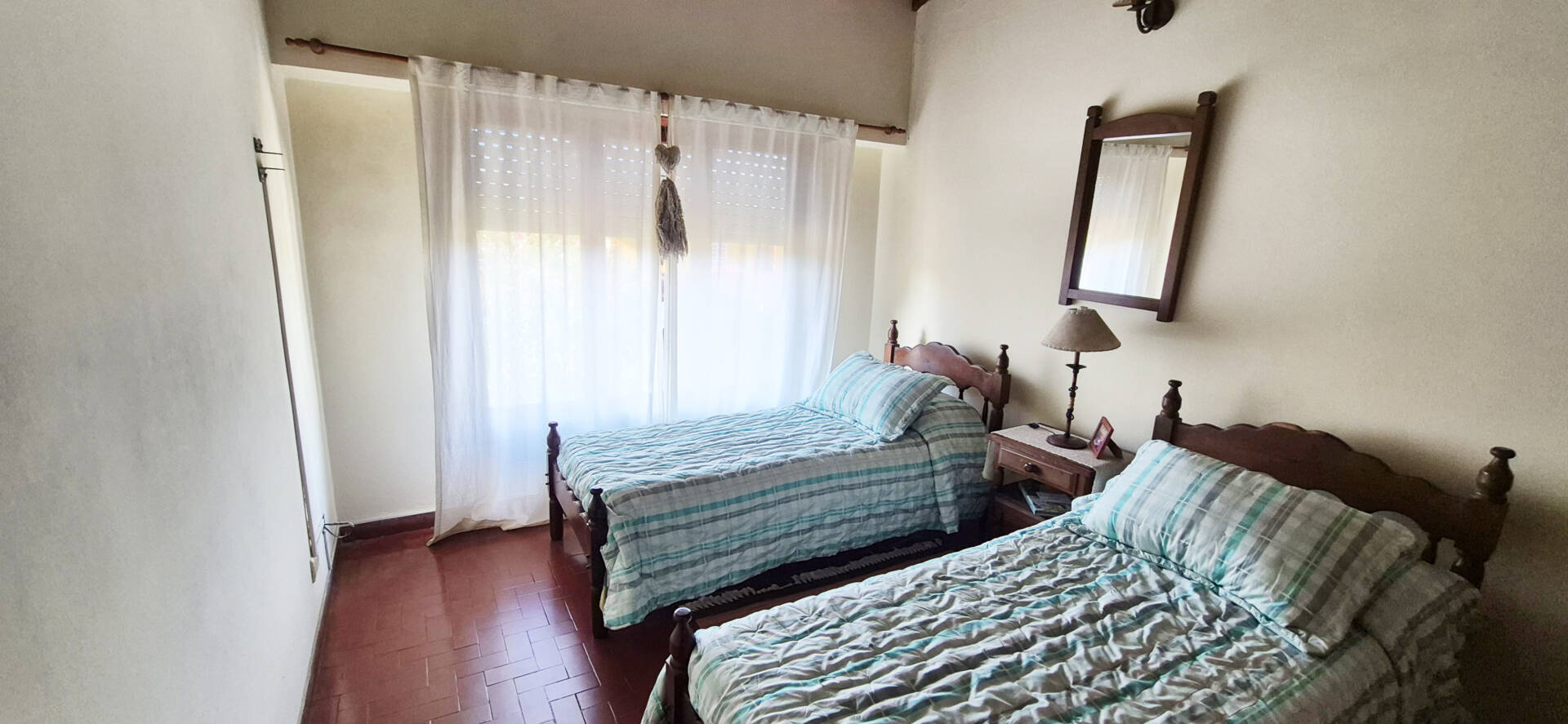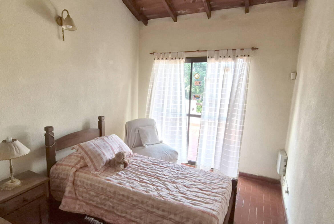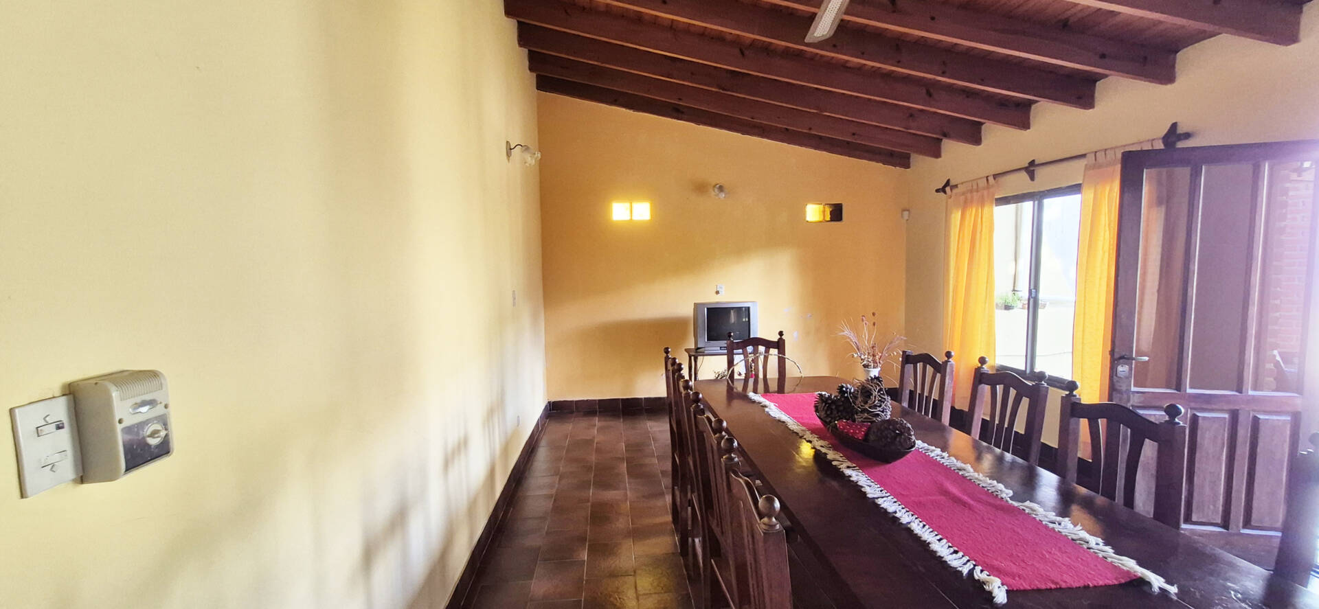 En el interior, la casa dispone de cuatro dormitorios y tres baños, distribuidos en ambientes funcionales. El living y comedor se integran en un espacio principal, con acceso directo al jardín y detalles en madera en techos y aberturas. La cocina está equipada y se conecta con el comedor diario, permitiendo una circulación fluida entre los ambientes. Además, la propiedad incluye una baulera, brindando espacio adicional de almacenamiento.